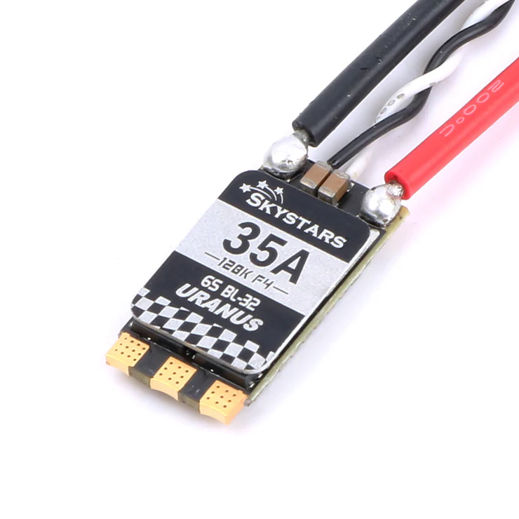 Эта модель станет идеальной находкой для пилотов, которые занимаются фристайлом или гонками на дронах. ESC регулятор Skystars Uranus 35A Blheli32 F4 128k обеспечивает плавное и высокоэффективное управление бесщёточными моторами. Он оснащен микроконтроллером F4, который позволяет добиться быстрого отклика. Модель также предлагает большой 40V полноразмерные MOSFET. Он обеспечивает стабильное питание, что повышает эффективность устройства. Обратите внимание, у ESC нет BEC.