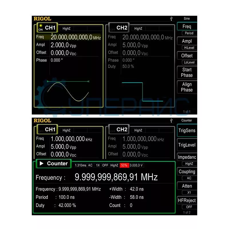 Функции измерений частота, период, положительная/отрицательная ширина импульса, рабочий цикл