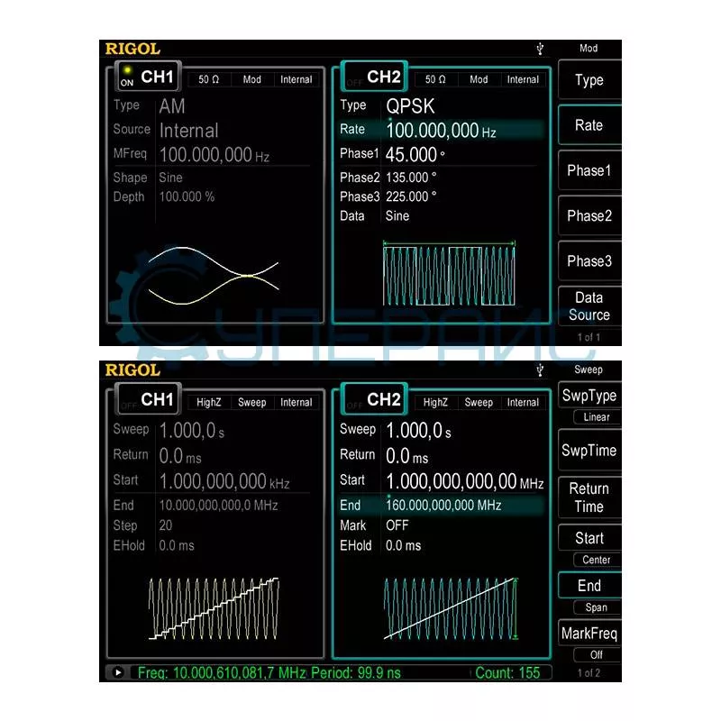 Диапазон частот прибора составляет 1 мкГц - 60 МГц: DG4062 можно применять для тестирования большого списка устройств – начиная низкочастотной аудиотехникой и заканчивая высокочастотными образцами электронных компонентов.