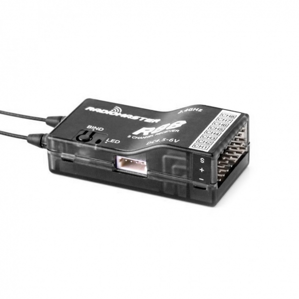 Радиоприёмник RadioMaster R88 8CH — это надежное устройство для управления квадрокоптерами. Он поддерживает 8 каналов, что позволяет осуществлять точное и стабильное управление. Этот приёмник работает в диапазоне частот от 2400 до 2483.5 МГц. Это обеспечивает хорошую связь и минимальные помехи.