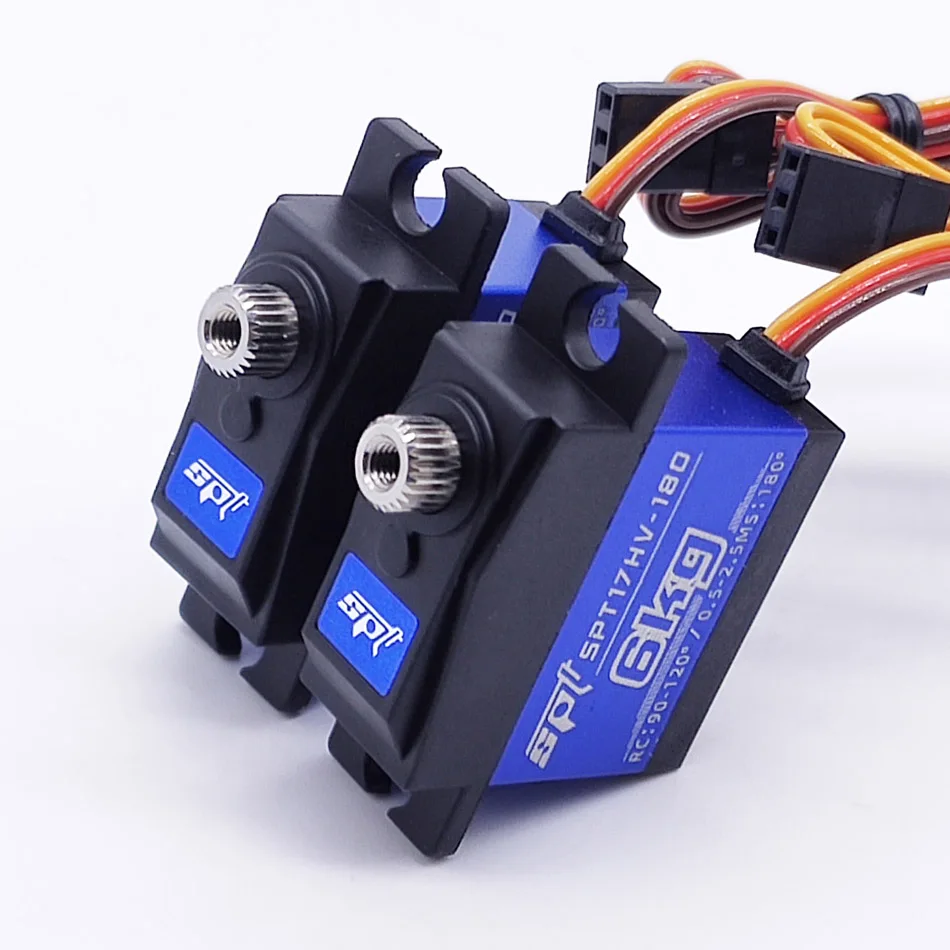 Сервопривод SPT 17HV-180 обладает крутящим моментом до 17 кг*см. Скорость вращения составляет 0,07 секунды на 60 градусов. Рабочее напряжение — 7,4 В, что делает его совместимым с большинством аккумуляторов.