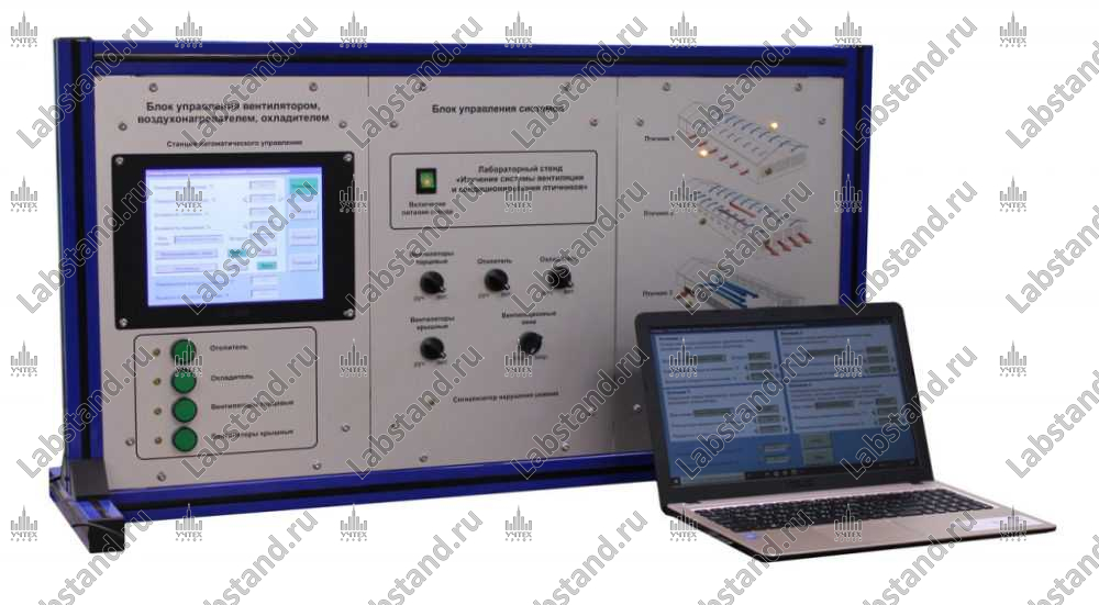 Назначение: Учебно-лабораторный стенд предназначен для проведения практических и лабораторных работ по изучению систем вентиляции и кондиционирования птичников, поддержания оптимальных значений показателей микроклимата.