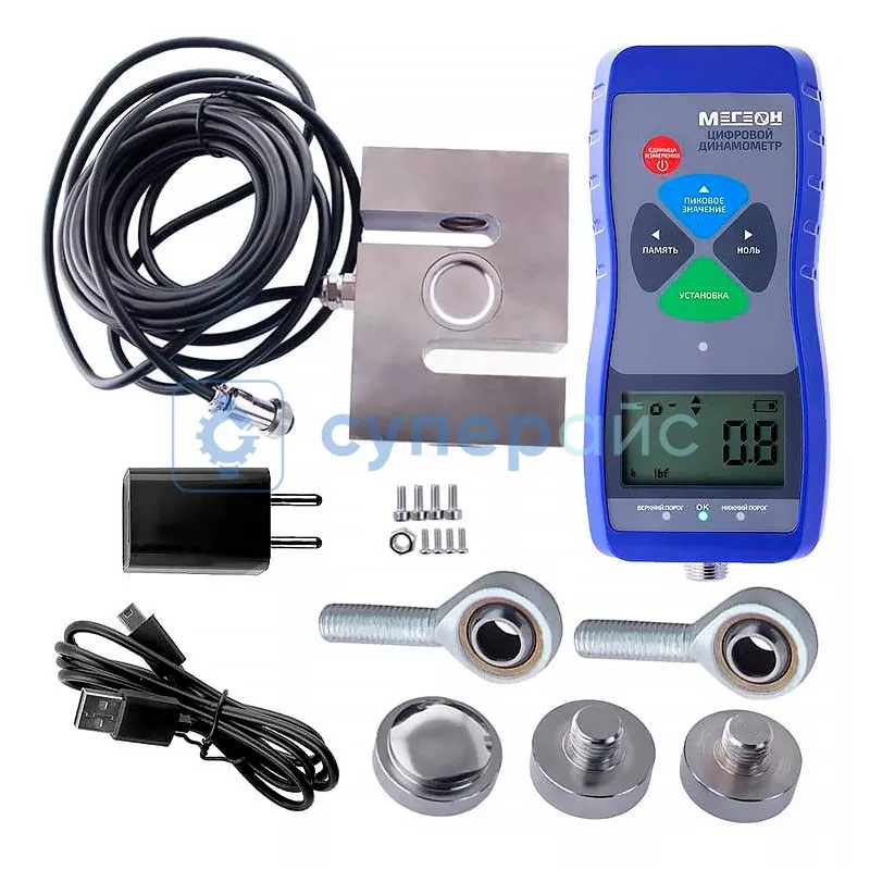 зарядное устройство – 1 шт; кабель USB - mini-USB – 1 шт; пластиковый кейс – 2 шт; выносной тензометрический датчик – 1 шт; руководство по эксплуатации – 1 шт |