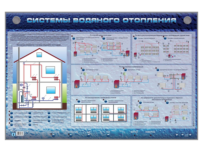 Электрифицированный стенд представляет собой панель с раздельной световой секционной индикацией, на которой представлена информация о системах водяного отопления.