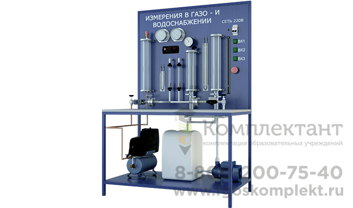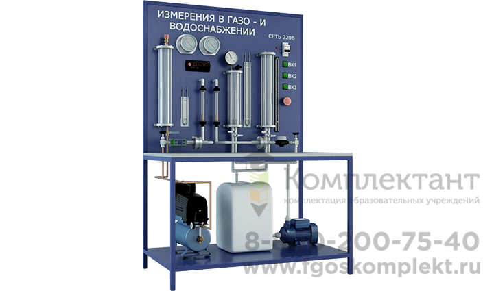 Лабораторный стенд Измерительные приборы давления, расхода, температуры предназначен для изучения различных методов измерения основных параметров в системах газо- и водоснабжения
