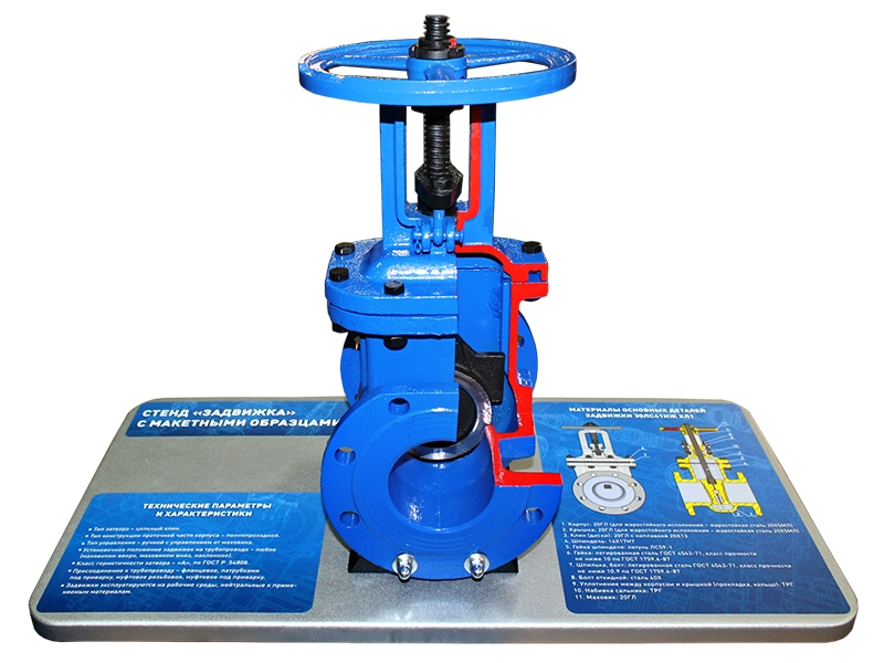 Стенд "Задвижка" с макетными образцами в разрезе |