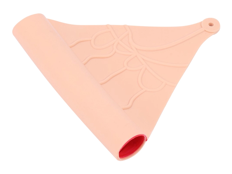 Фрагмент кишечника с сектором брыжейки представляет собой модуль из двухкомпонентного силикона, предназначенного контролировать правильность наложения шва, в случае появления пилящего эффекта.