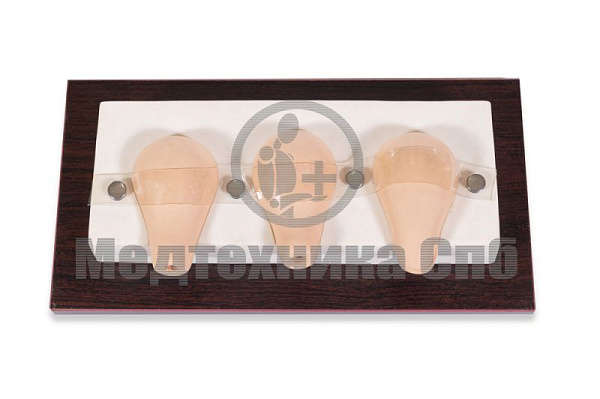 Модель для обучения искусственного аборта. Состоит из 3 моделей: горизонтальное положение матки; матка с беременностью 6-7 недель, положение антеверсии; матка с беременностью 6-7 недель, положение ретроверсии.