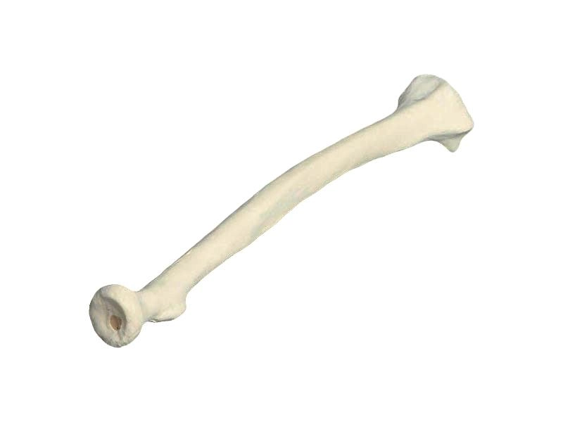Модель представляет точную анатомическую копию натуральной лучевой кости человека. Путем подбора полимерных материалов механические свойства изделия (вес, плотность, упругость) максимально приближены к естественным прижизненным значениям.