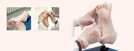 Эта модель помогает обучению в простом обрезании ноготей и мозолей , являясь полезной моделью для общего обучения по заботе о ноге.