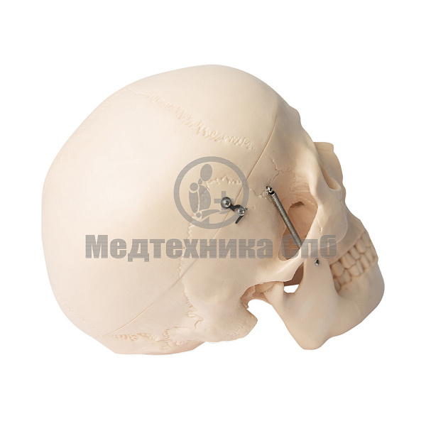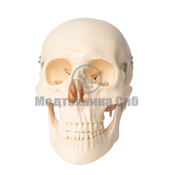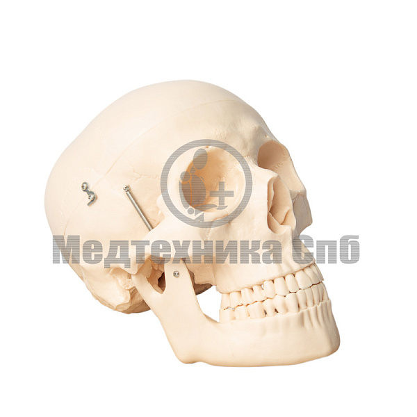 Модель черепа состоит из 3 частей: основания черепа, съёмного свода черепа и подвижной нижней челюсти.
