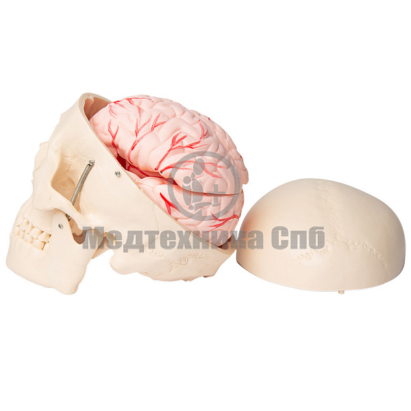 Наглядность. Модель демонстрирует артерии головного мозга. Съёмный свод позволяет изучать внутреннее строение черепа.