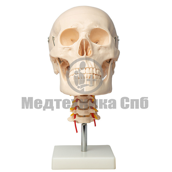 Модель черепа человека с шейными позвонками 4 части (на подставке) (арт. A018)