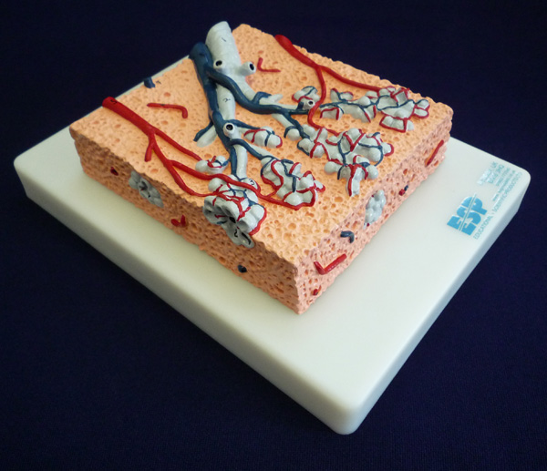 Эта модель легких в разрезе, увеличенная примерно в 20 раз. Показаны бронх, бронхиолы и альвеолы с соответствующими легочными и бронхиальными кровеносными сосудами. Модель 12x10x3 см. С карточкой с ключами.