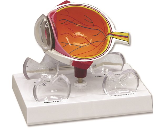 Увеличенная модель глаза в норме включает в себя четыре сменные роговицы: буллёзную кератопатию; эндотелиальную дистрофию Фукса; кератоконус и роговицу в норме.Размер: 13x8x13,5 см