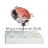 Модель разреза глазного яблока устанавливается на подставку с опорой, линзы, имитирующие хрусталики, расположены в специальных нишах на подставке. В комплект к модели входит информационная карточка на английском языке, которую при необходимости можно установить на подставку, при помощи держателя (входит в комплект).