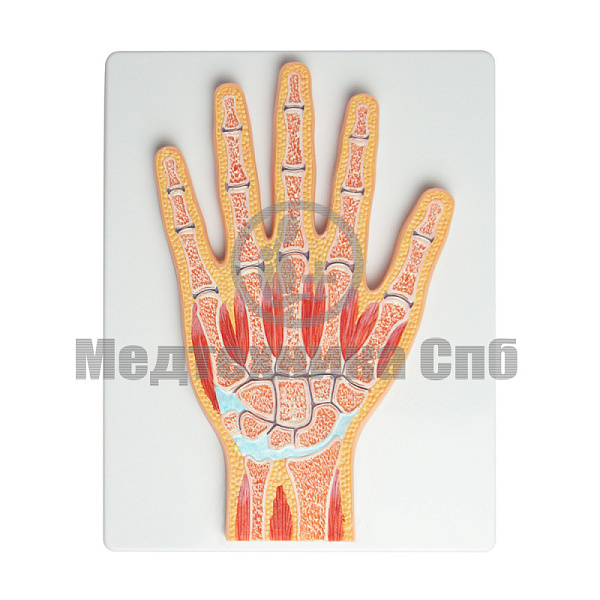 На модели представлены кости кисти, лучезапястный сустав, суставы кисти и коллатеральные связки.