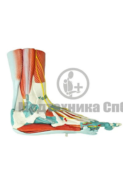 На дорсальной части модели можно снять икроножную мышцу. Подошва модели стопы представлена тремя слоями, показывает короткий сгибатель пальцев, квадратную мышцу подошвы, сухожилие длинного сгибателя пальцев и мышцу - сгибатель большого пальца.