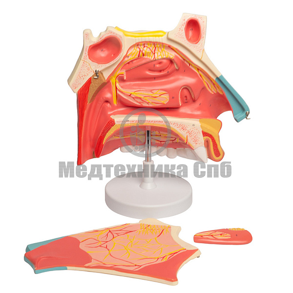 Подробная анатомия носа представлена в модели «Носовая полость в разрезе, 3 части (арт. P0434)». Идеальна для наглядной демонстрации строения дыхательного тракта, подходит для учебных заведений и медицинских курсов. Купите интерактивное пособие прямо сейчас.