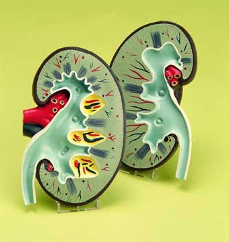 Модель почки, разделенная на две части