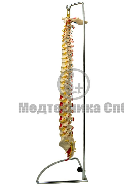 Модель позвоночника с раскрашенными местами прикрепления мышц (на штативе) (арт. YAL038A)