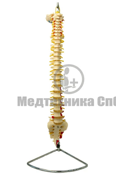 В составе модели: пластина затылочной кости, шейные, грудные, поясничные позвонки, крестец и копчик.