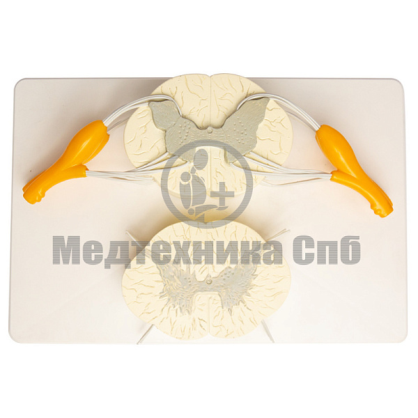 Модель состоит из двух моделей (плоской и объемной модели спинного мозга), закрепленных на одну подставку, изготовлена из ПВХ и краски.