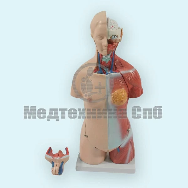 Разборная анатомическая модель торса двуполая, 45 см, состоит из 23 частей на удобной подставке — идеальный инструмент для изучения строения тела. Купите наглядное пособие для школ, вузов и медицинских учреждений прямо сейчас.