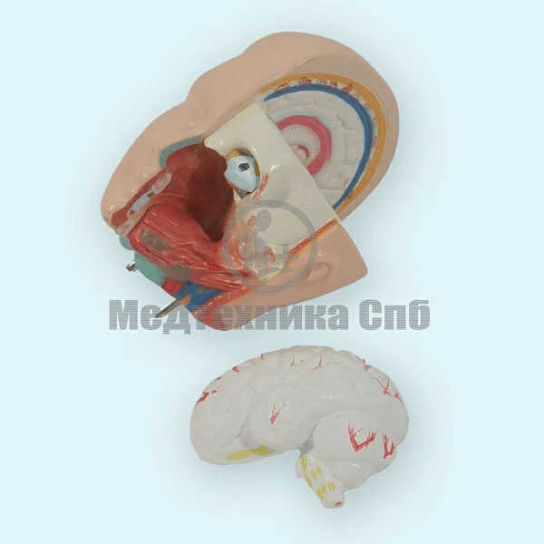 Модель головы с разрезом, демонстрирующим головной мозг.