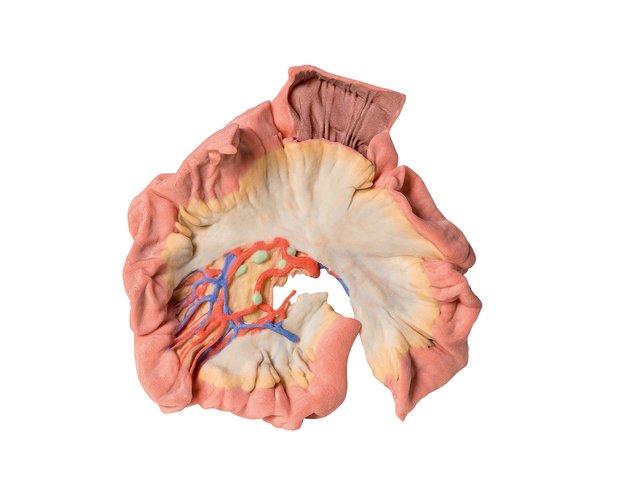 Данная модель имитирует человека с достаточно большим количеством брюшного жира, таким образом «окно» не проявляется, поскольку жир распространяется дальше к брыжеечной границе тощей кишки.