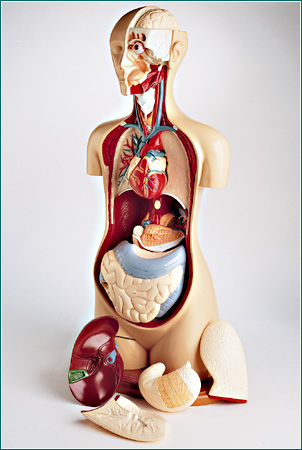 Демонстрируя функциональные системы тела человека с помощью основных анатомических деталей, полноразмерная базовая модель делится на следующие части: