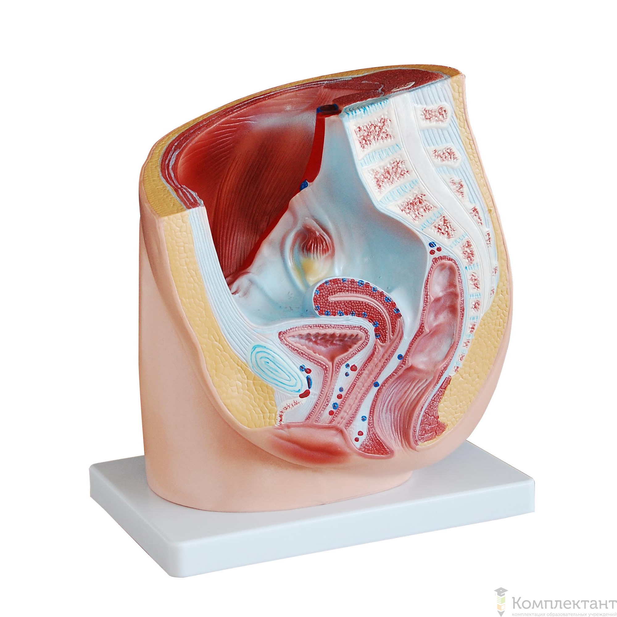 - Модель представляет собой женский таз в сагиттальном сечении и показывает женские половые органы, мочевой пузырь и участок прямой кишки, также детально показаны абдоминальные и тазовые мышцы