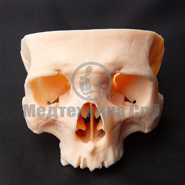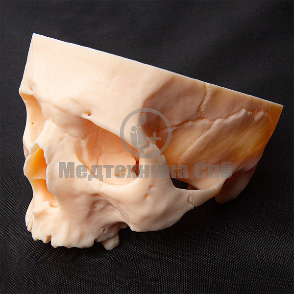 Высокоточный анатомический макет основания черепа, изготовлен путем сканирования анатомического образца черепа человека и произведен методом фотополимерной 3D-печати.