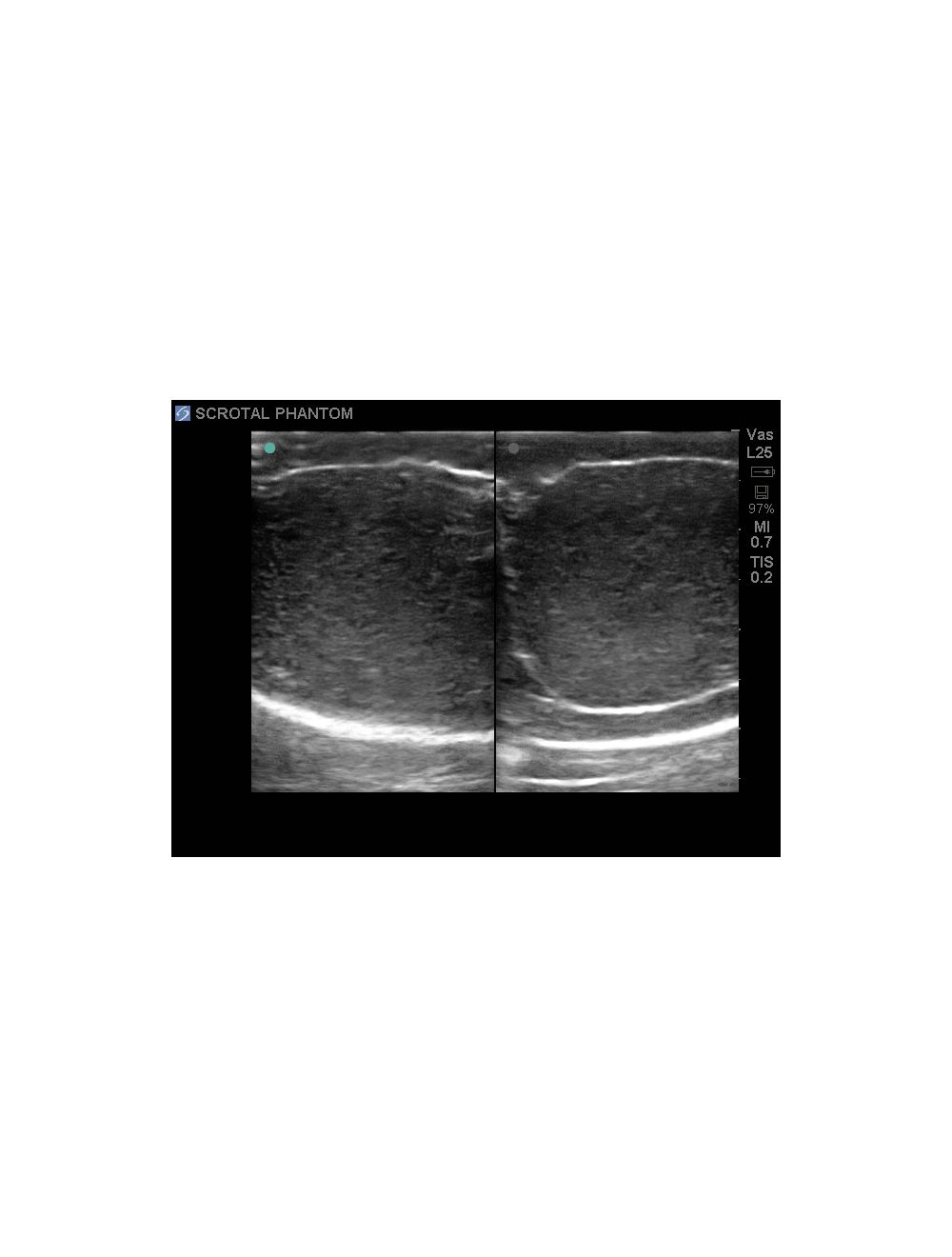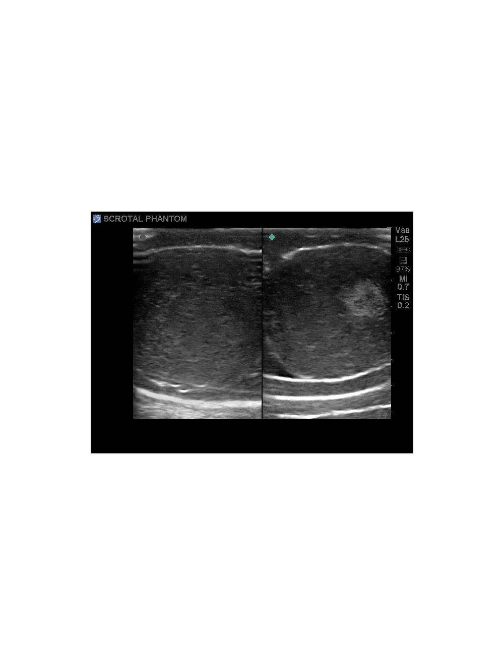 - использование пакетов ультразвуковых расчетов для измерения кист, образований и прочих структур - Позволяет использовать имеющуюся ультразвуковую систему для получения чрезвычайно реалистичных ультразвуковых изображений органов мошонки