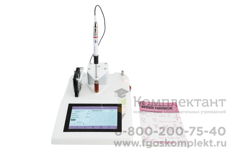 Учебно-лабораторный комплекс предназначен для проведения лабораторных работ по разделу «Фазовое равновесие» дисциплины «Физическая химия» учащимися высших, средних специальных учебных заведений, а также может использоваться в специализированных и аналитических лабораториях. Модуль позволяет организовать одновременную работу от 1 до 3 человек.