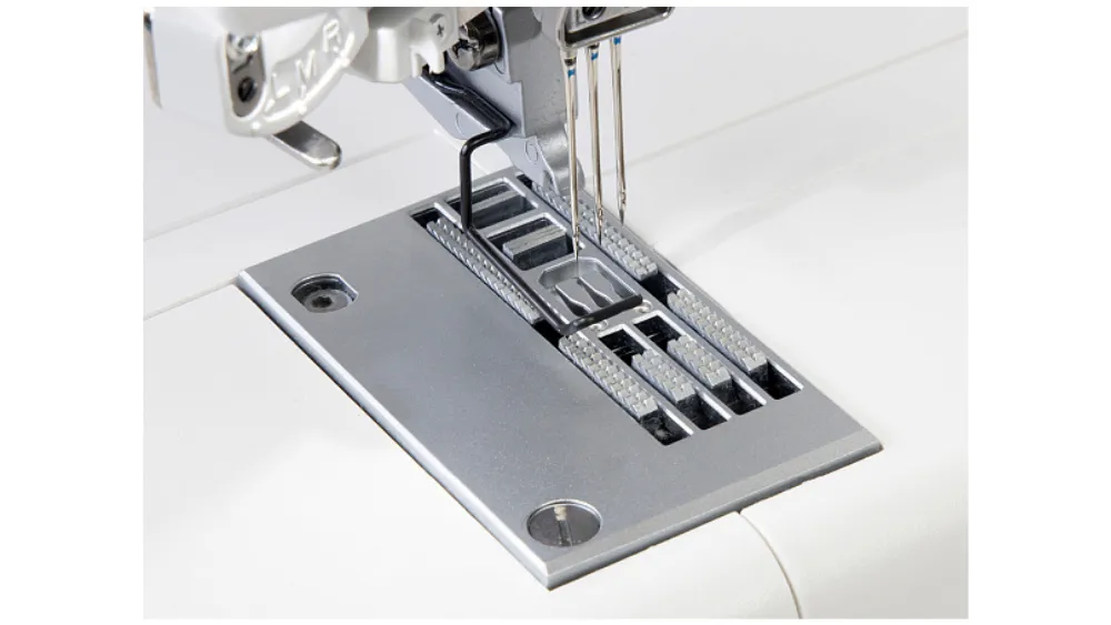 Janome Cover Pro 3000 Professional предлагает на Ваш выбор 6 видов встроенных швов, включая плоский шов с верхним застилом, 2-игольный узкий распошивальный, 2-игольный широкий распошивальный, 3-игольный распошивальный и цепной стежок. Для швов с верхним застилом предусмотрен встроенный направитель. Наличие рукавной платформы позволяет с комфортом обрабатывать элементы узких изделий. Обычную подсветку дополняет встроенная в верхнюю часть корпуса отдельная лампа, которая выдвигается при необходимости осветить место перед игольной пластиной.