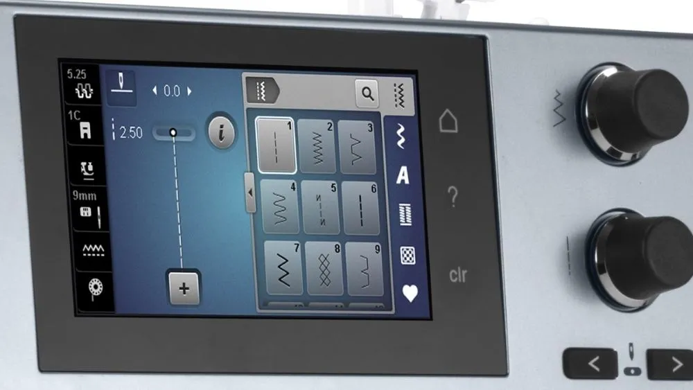 Bernina B475 QE предоставляет на Ваш выбор 840 различных операций, которые откроют Вам безграничные возможности в творчестве и шитье. Виды строчек легко переключаются с помощью цветного сенсорного дисплея, расположенного на передней части корпуса. Выполнение петли осуществляется в автоматическом режиме.
