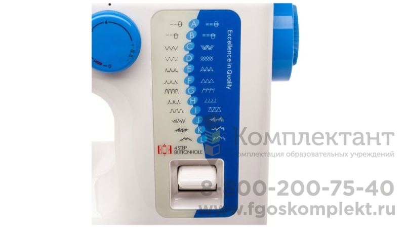 зигзаг, оверлочная, отделка фестоном, потайная строчка, прямая строчка (левое положение иглы), прямая строчка (центральное положение иглы), трикотажные строчки, эластичный зигзаг