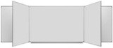 Рабочая поверхность изготовлена из стального полимерного листа, обрамление - высокопрочный алюминиевый профиль, благодаря чему доска имеет высокую износоустойчивость, прочность и надежность конструкции. 1-й элемент это центральная часть школьной доски, которая крепится к стене, а створки (2-й и 3-й элементы), могут независимо открываться и закрываться от плоскости центральной части доски до плоскости стены. Также есть статичные 4 и 5 элементны. Петли многоэлементных досок рассчитаны на нагрузку свыше 100 кг. Имеется лоток для мела/маркера и принадлежностей.