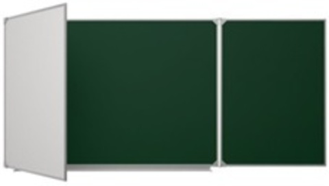 Доска школьная настенная 3-хэлементная для письма мелом и маркером, 5 рабочих поверхностей. В качестве рабочих полотен используются только высокопрочные материалы, специально предназначенные для школьных досок.